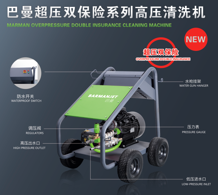 配备1000BAR高压溢流枪,使用寿命长,更坚固耐用且安全可靠,更加人性化设计,在除锈除漆表面处理领域尤为表现突出。